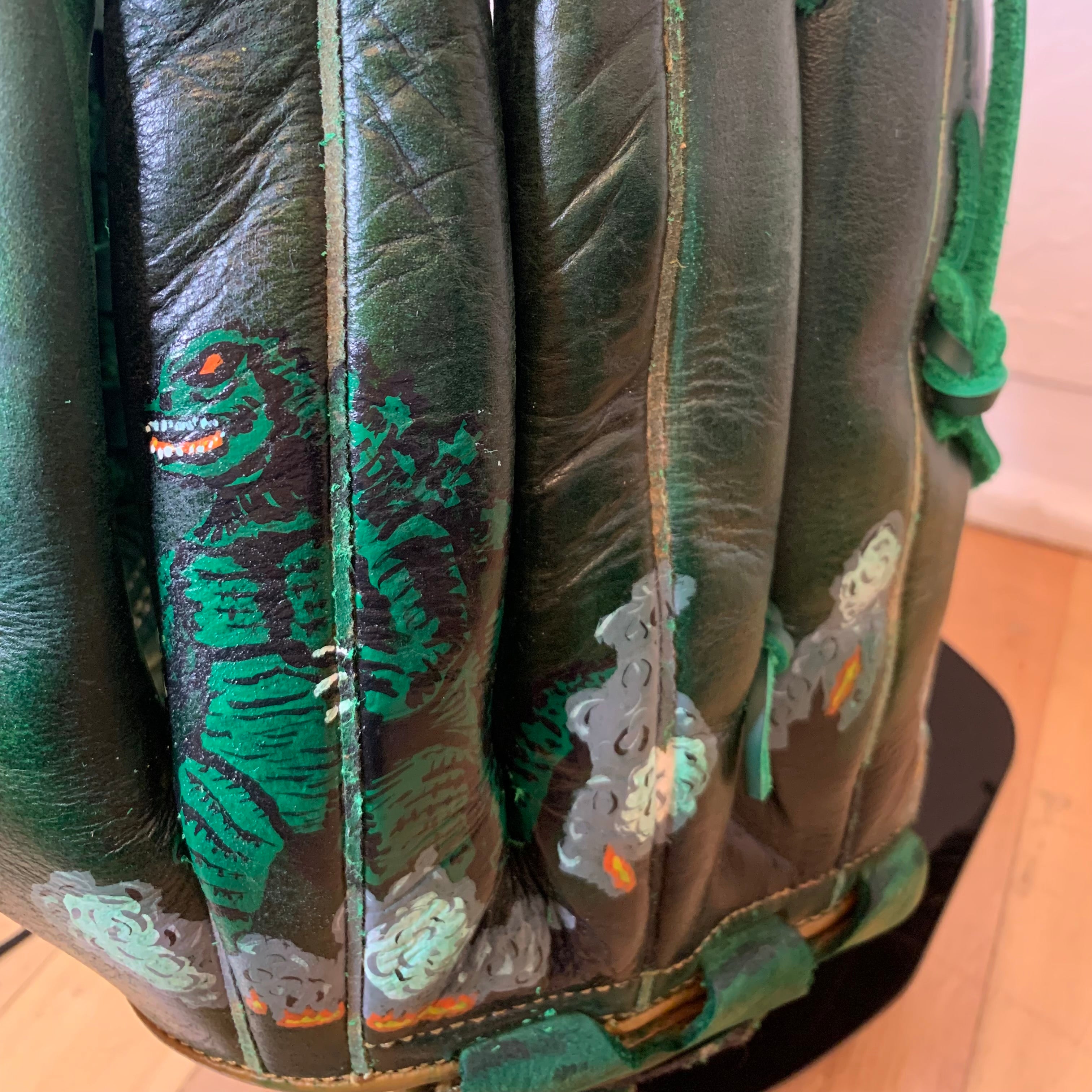 Hand-painted names, numbers, logos, and artwork on gloves and cleats using the highest quality leather paint, sealed for durability and gameplay.